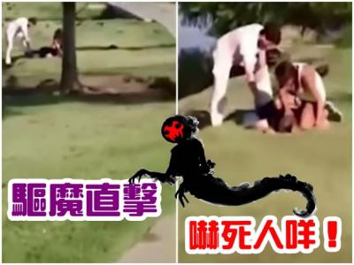路过的途人瞥见驱魔场面(左图),该对男女将“中邪女子”压在地上(右图)。 ...