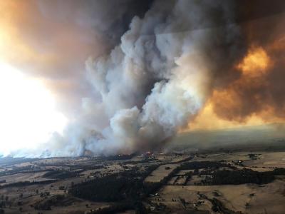 2019年12月30日,烟雾卷流下野火在澳洲拜恩斯戴尔(Bairnsdale)肆虐,数千名旅客在...
