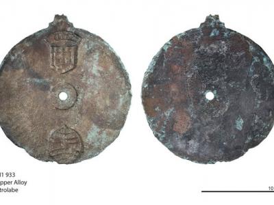 这个星盘上有葡萄牙的皇家纹章(最上),还有天球仪...