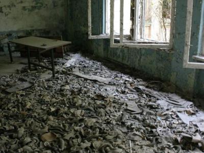 切尔诺贝利核电厂附近一所小学内,散落一地的防毒面具,诉说着1986年4月核反应炉...