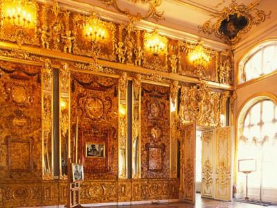 纳粹黄金列车或藏有惊世珍宝"琥珀屋",图中是复制的琥珀屋。 1932年拍摄的琥珀...
