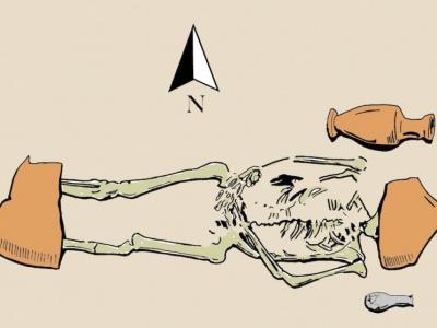 营养不良的病者尸体,头部及双腿被巨型沉重的土罐碎片和大石头压住。 古希腊人...