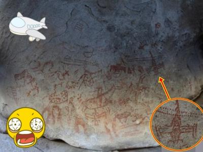 新疆考古学家研究万年前洞穴时,惊现疑似飞机岩画(小图)。 有网民惊呼“这是...