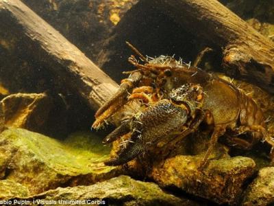 印尼摄影师Andri Priyadi拍到大胆蜗牛爬向咸水鳄鼻子的全过程 (神秘的地...