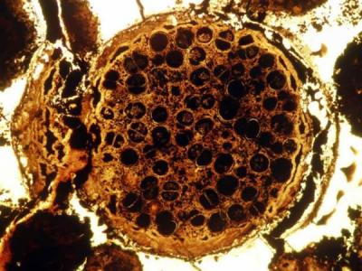 科研人员在研究瓮安生物群“胚胎”化石 瓮安生物群“胚胎”化石显微图 瓮安...