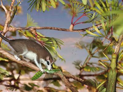 Cretophasmomima melanogramma生活习性和环境的复原图。图片:S. Fernandez. ...