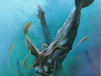 巨头鲸和挪威海怪(巨型乌贼)搏斗的艺术家印象图。挪威海怪的争论再次出现在科研...