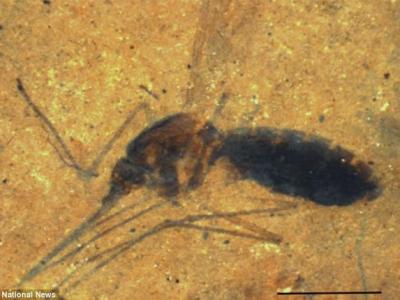 美国研究人员发现一只4600万年前雌性蚊子化石腹内充满吸食的血液 (神秘的地球u...