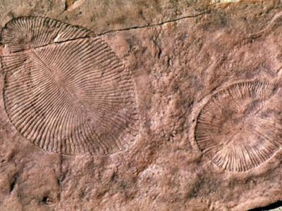 南澳发现的狄更逊水母(Dickinsonia)化石:研究表明这些化石可能是由一些地衣或其...