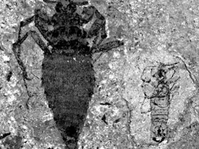 新发现的侏罗纪跳蚤化石(大的雌性,小的雄性)。 在1.65亿年前的内蒙古宁城道虎...