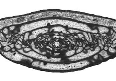 古生代有孔虫的多层而复杂的化石外壳 美国明尼阿波利斯市报道,曾出现在古生代海...