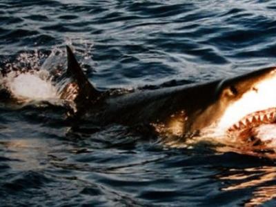 一只大白鲨被喂食的情景 科德角海岸附近的一只大白鲨 这块保存完好的化石是...