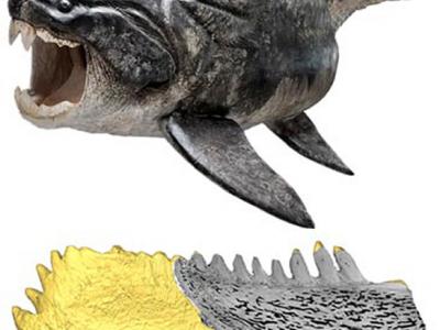 (上)邓氏鱼重塑模型,(下)盾皮鱼下颌的横截面。 关于一种古老的身披“盔甲”...