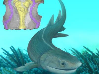 奇异东生鱼生态复原图以及脑颅三维虚拟复原图 通常认为,在3.7亿年前的晚泥盆世...