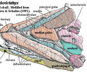 对名为Panderichthys的鱼(一种与最早的两栖动物亲缘关系密切的长着圆鳍的鱼)所...