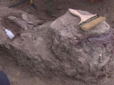 延吉市龙山恐龙化石群保护性挖掘现场挖掘出白垩纪鳄...
