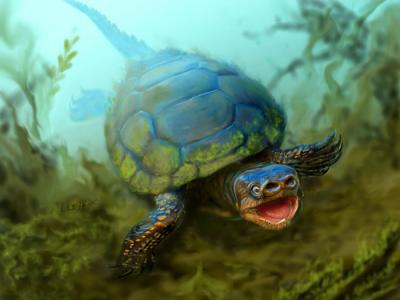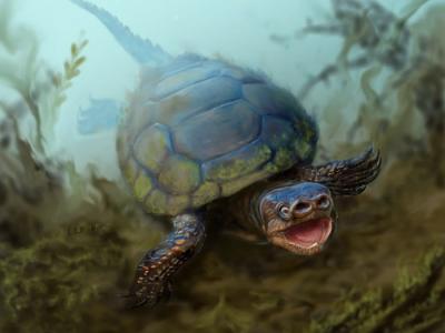 画家笔下的猪鼻龟外貌 (神秘的地球报道)一只于白垩纪时代与暴龙和鸭嘴龙一起生...