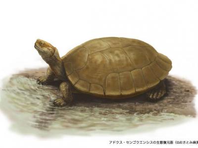 1.2亿年前阿杜库斯龟属新种“千石峡阿杜库斯龟”生态复原图(图片:日本福井县立...