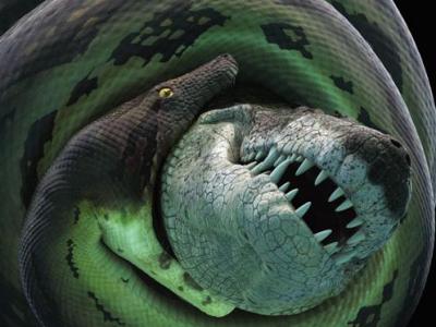 6000万年前4.8米长鳄鱼与17米长巨蟒相遇