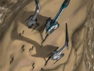 翼龙类在水畔行走留下足迹(绘图Mark Witton) 綦江翼龙足迹 (摄影 肖诗白) ...