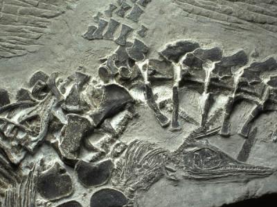 化石化的沧龙骨骼,胃里有另外三个沧龙物种的骨头。 (神秘的地球uux.cn)据凤凰...