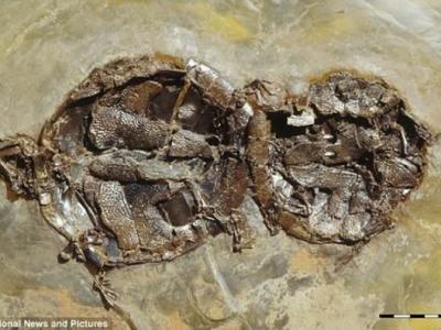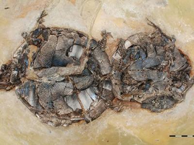交配姿态的无盾龟化石 近日,德国古生物学家们“当场抓获”了拥有4700万年历史的...
