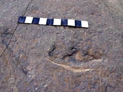 山东青岛即墨市区附近发现华东首例翼龙足迹化石 “化石猎人”唐永刚在翼龙足迹...