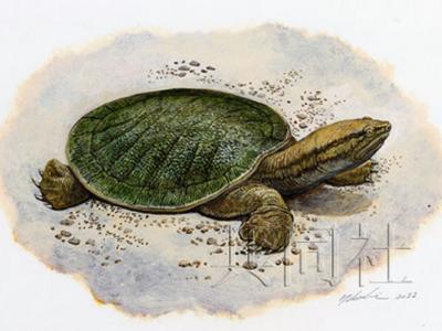 日本石川县白山市发现的约1.3亿年前的甲鱼化石复原图 据共同社29日报道,在日本...