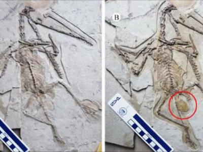中国辽宁省境内发现了保存完好的雌性翼龙