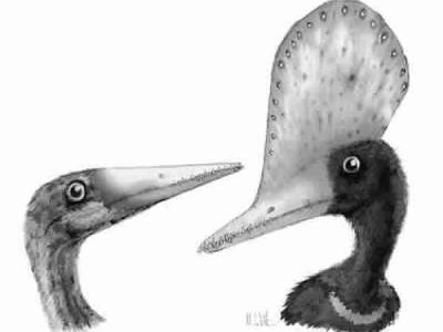 达尔文翼龙的性别特徵。男性(右)有一个羽冠,但这在女性上就看不见(左)。这种...