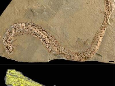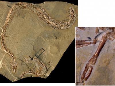 上: 蛇化石,下: X光成像图片显示其腿部细节 (神秘的地球www.uux.cn)一种新...