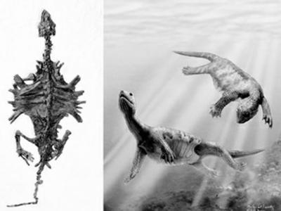 最原始龟类化石及复原图 “很久很久以前的乌龟是什么样子的...