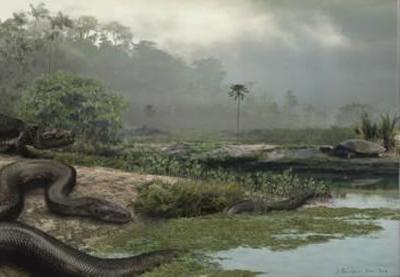 5800万至6000万年前生活在哥伦比亚东北部的热带雨林地区最大的蟒蛇复原图 新发...