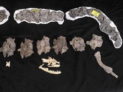史前巨蛇的部分化石 史前巨蛇的复原图 化石研究者们是在位于南美洲的哥伦比亚...