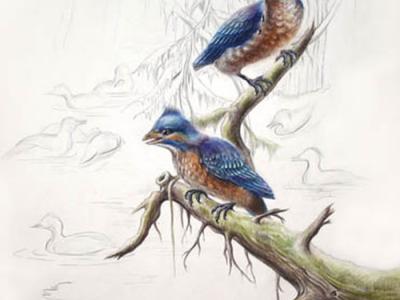 奇异食鱼反鸟生活复原图(史爱娟绘制)奇异食鱼反鸟...