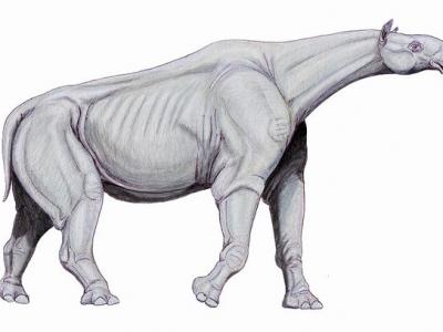 俾路支兽复原图 最大陆生哺乳动物的骨骼化石是1910年英国古生物学家C. F. Coope...