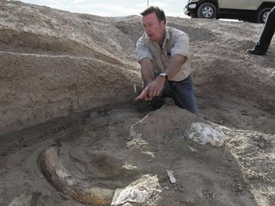 猛犸象牙发掘现场 古生物学家Scott E. Scott最近刚清理出一具哥伦比亚猛犸(...