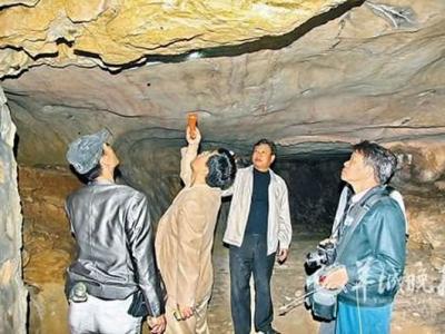 考察队员在狮岗岩洞内考察 珍藏了40年的牙齿化石 原本前往肇庆考察地质地貌的...