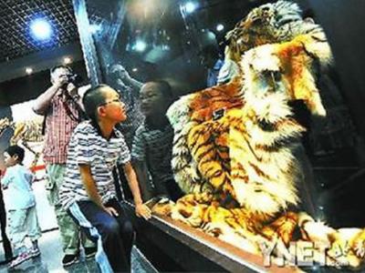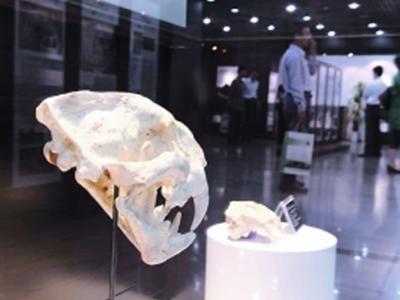 古中华虎化石亮相 珍贵的虎化石、美丽的虎皮标本、骠悍的剑齿虎模型……在昨...