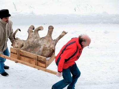 猛犸象被重新埋入雪地 据英国《每日邮报》报道,为了防止一具完好无损的史前猛犸...