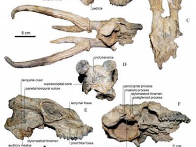 甘肃临夏盆地发现的和政始柱角鹿头骨化石(神秘的地球配图) (神秘的地球报道)...