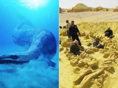 4千万年前龙王鲸吞下小鲸鱼,随后遭到鲨鱼袭击(神秘的地球配图) (神秘的...