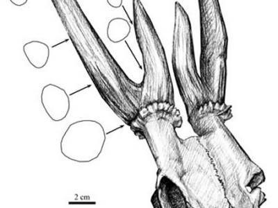 采自甘肃临夏盆地的大真角鹿(Euprox grandis)头骨化石,正型标本(侯素宽供图)...
