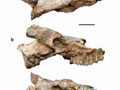 一块哺乳动物头骨化石,牙齿窝里的沉积物,原来是史前蜜蜂筑的巢穴。图片来源:uux...