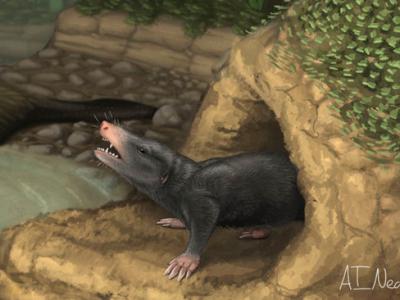 已知最早的地穴型哺乳动物:短指挖掘柱齿兽复原图(神秘的地球配图) 已知最早...