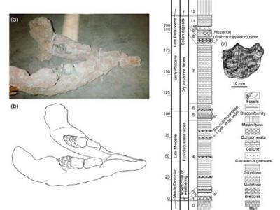 中华乳齿象亚科新材料的照片和综合地层剖面(王世骐供图) 中华乳齿象亚科未定...