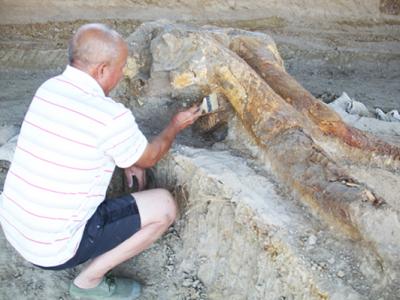 泥河湾遗址群首次发现较完整猛犸象头化石