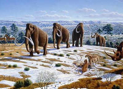 很多猛犸象的图片描绘了它们在草地上。最新证据表明冰河世纪的植物群主要是草本开...