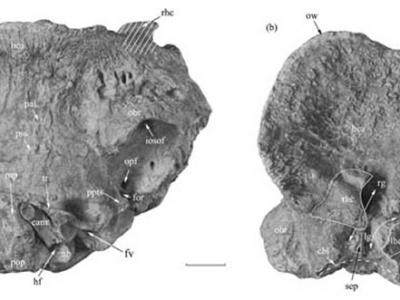 一块哺乳动物头骨化石,牙齿窝里的沉积物,原来是史前蜜蜂筑的巢穴。图片来源:uux...