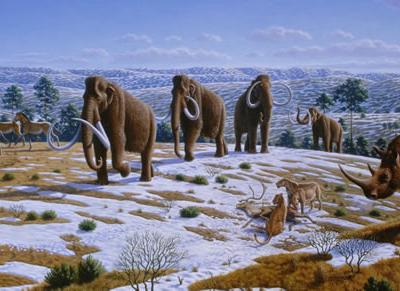 史前巨型动物如猛犸象、披毛犀、野牛和马